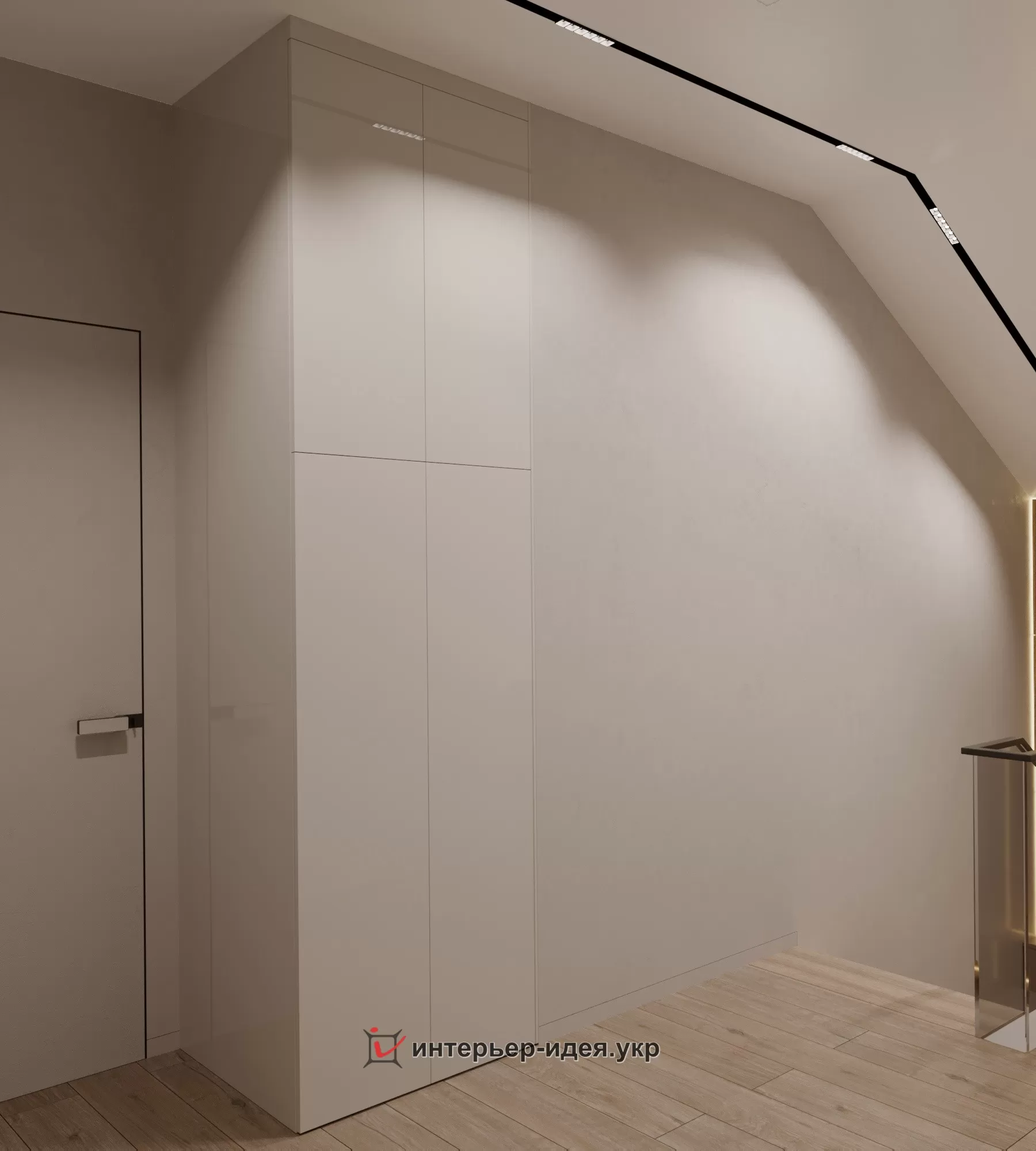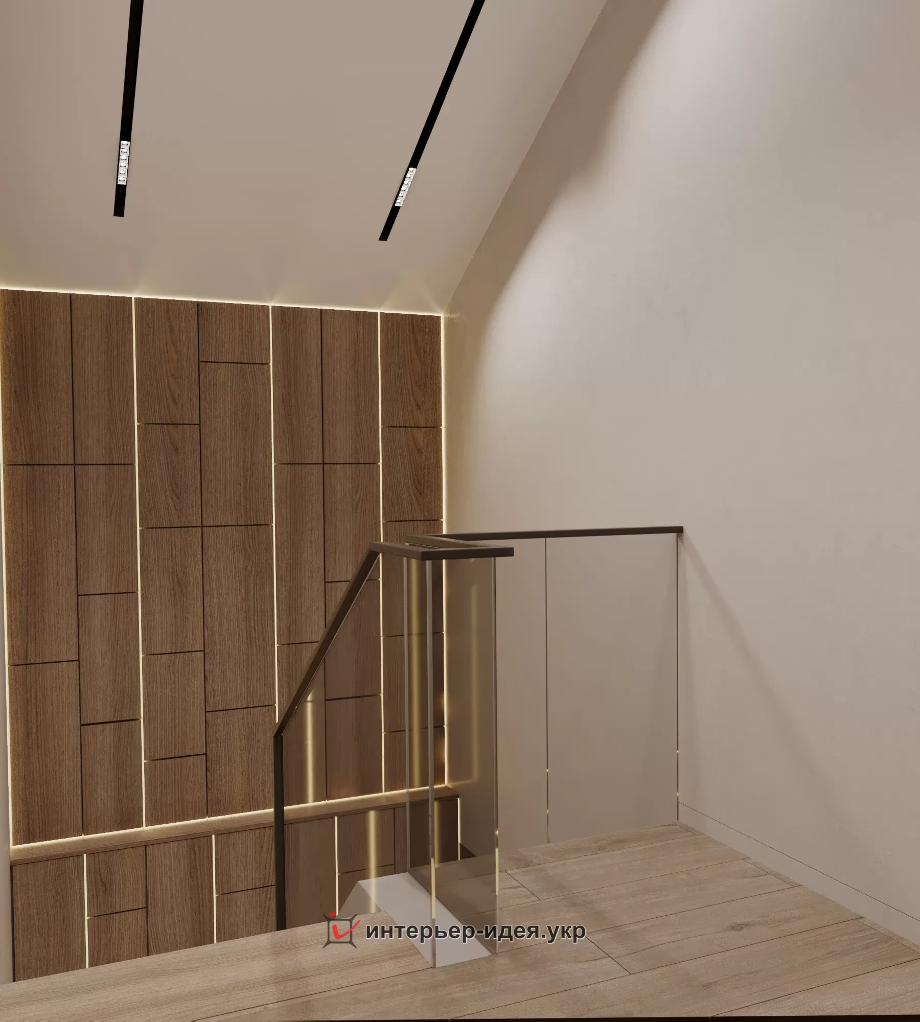 Особого внимания в данном интерьере требует решение оформления лестничной площадки.