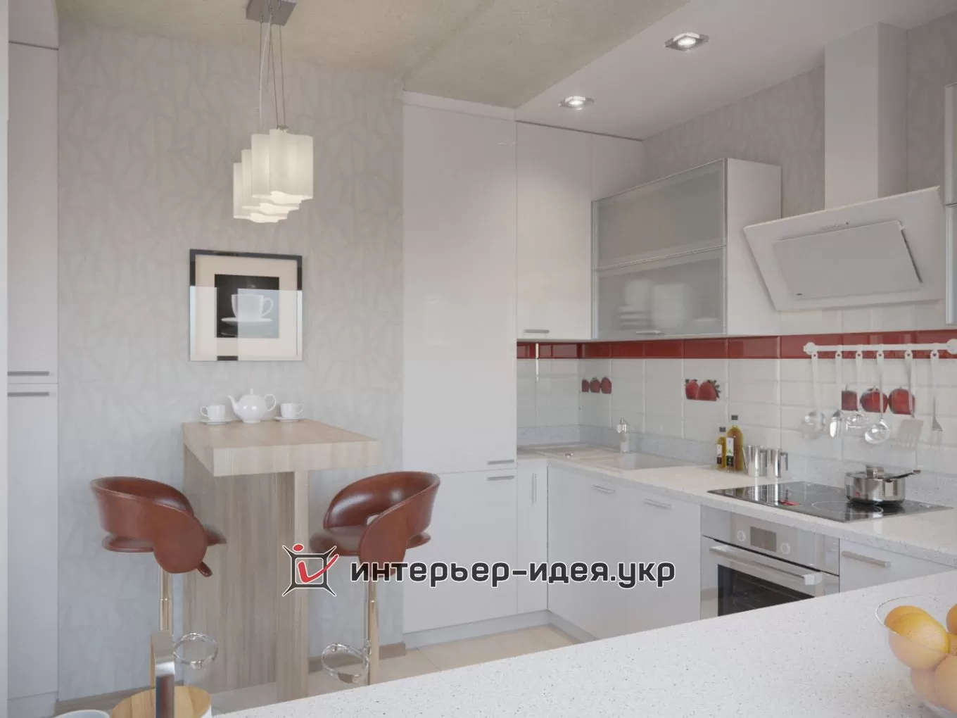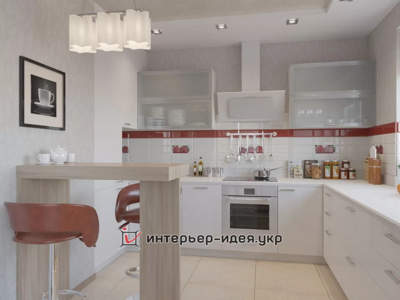 Дизайн кухни белого цвета с клубничным декором, г. Черкассы.