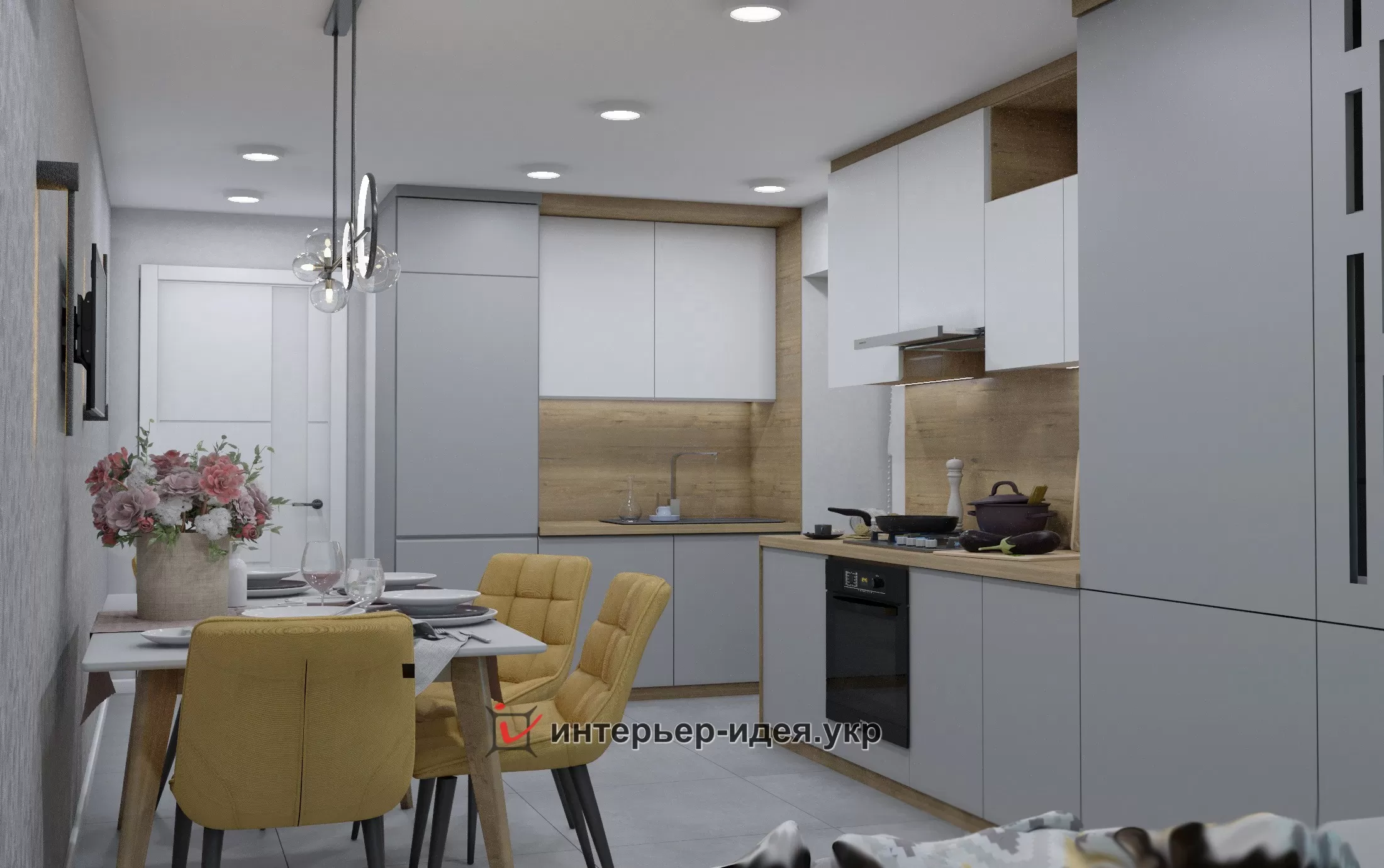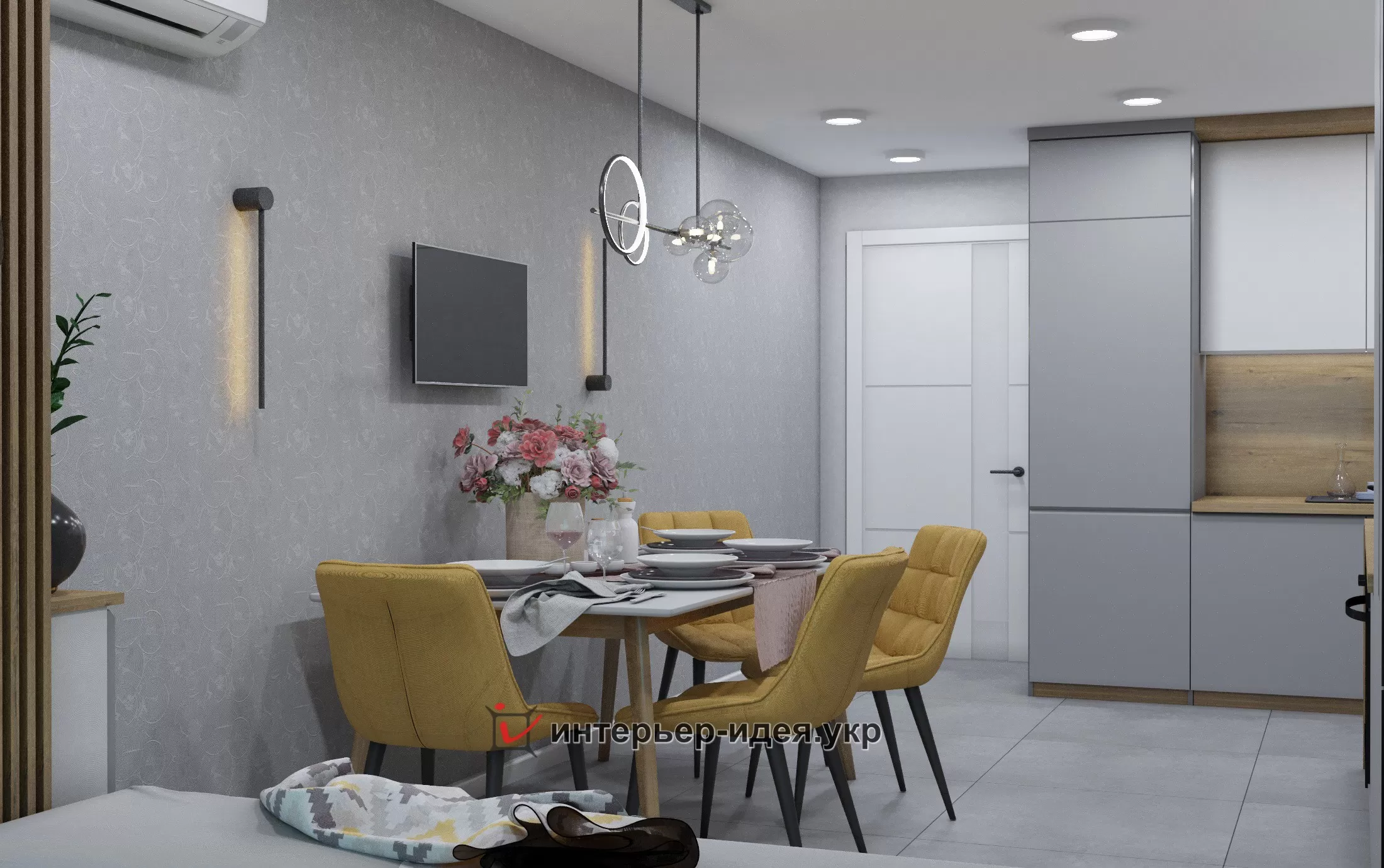 В интерьере присутствуют яркие элементы желтого цвета, которые оживляют помещение и добавляют солнечного настроения.