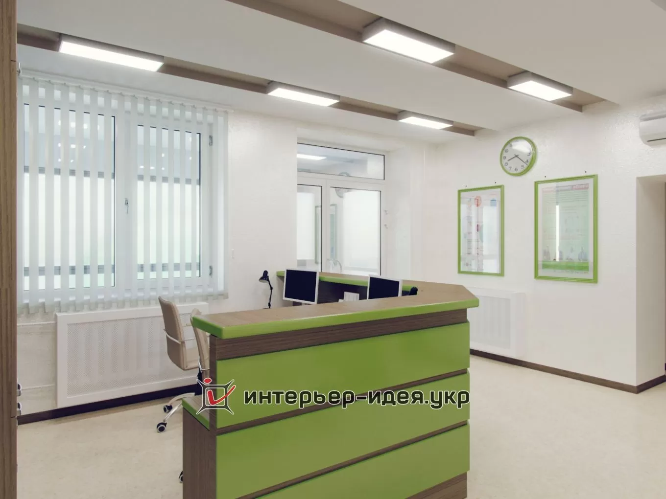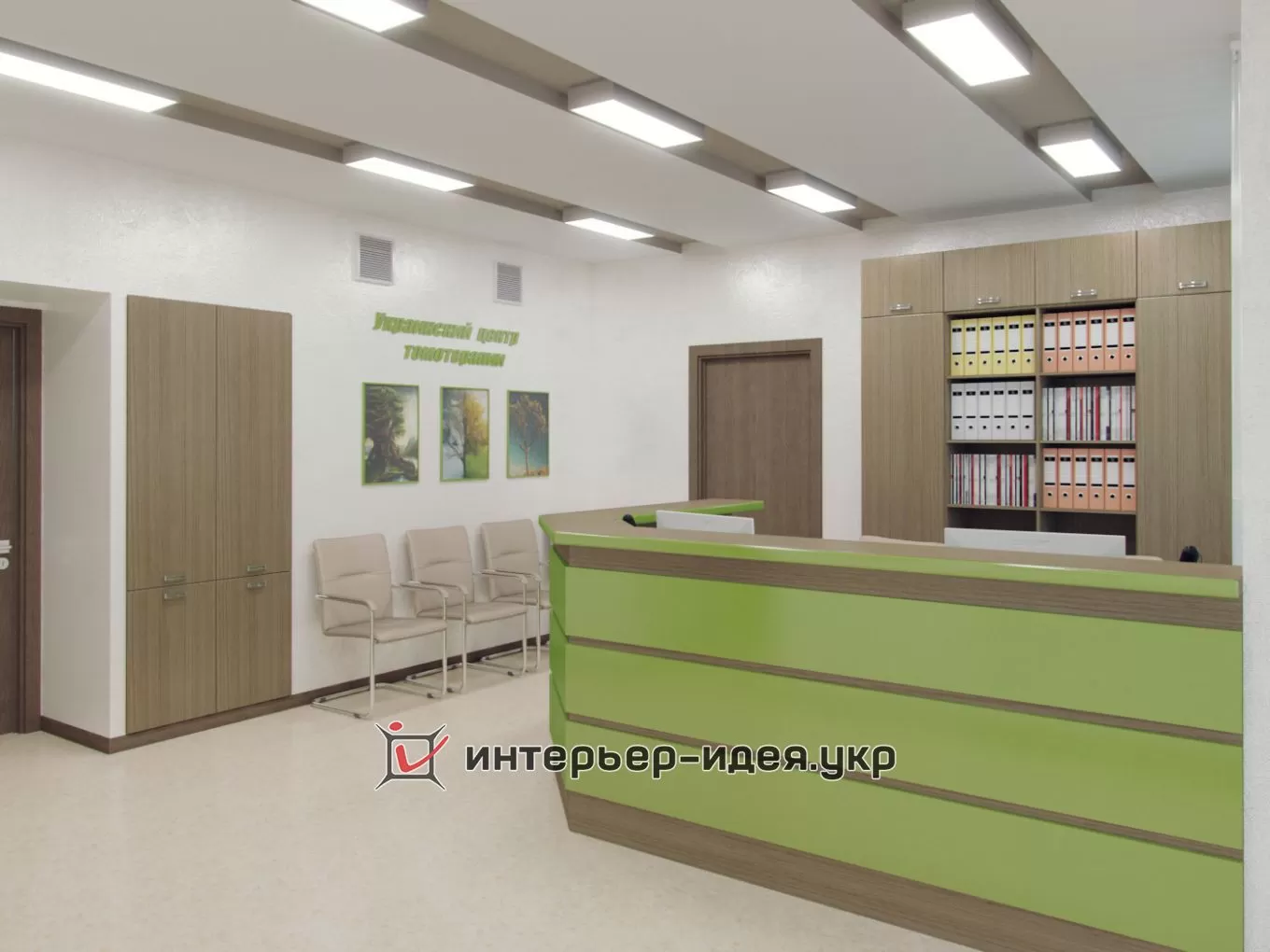 Дизайн ресепшн в Украинском Центре Томотерапии, г. Кировоград. Заказать дизайн интерьер офиса.